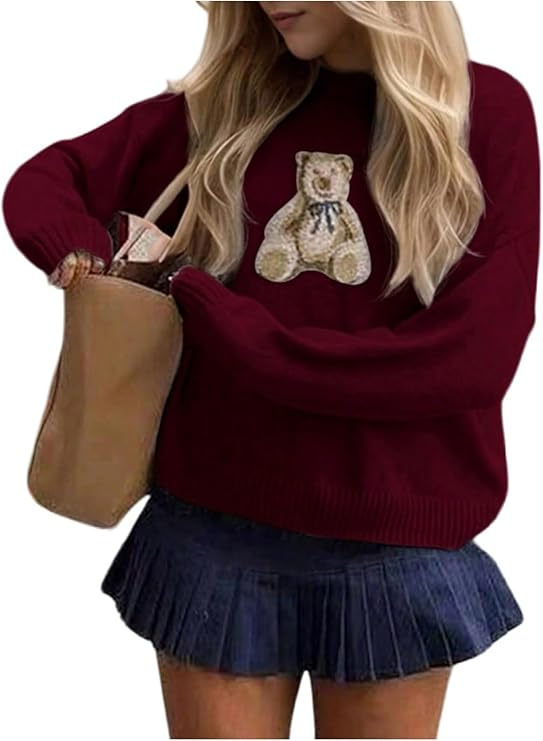 If you love cute and cozy, this sweater is a must-have. The bear graphic is adorable without looking childish, and the knit fabric is soft and warm without being bulky. It’s perfect for lounging, casual outings, or even cozy days at work.